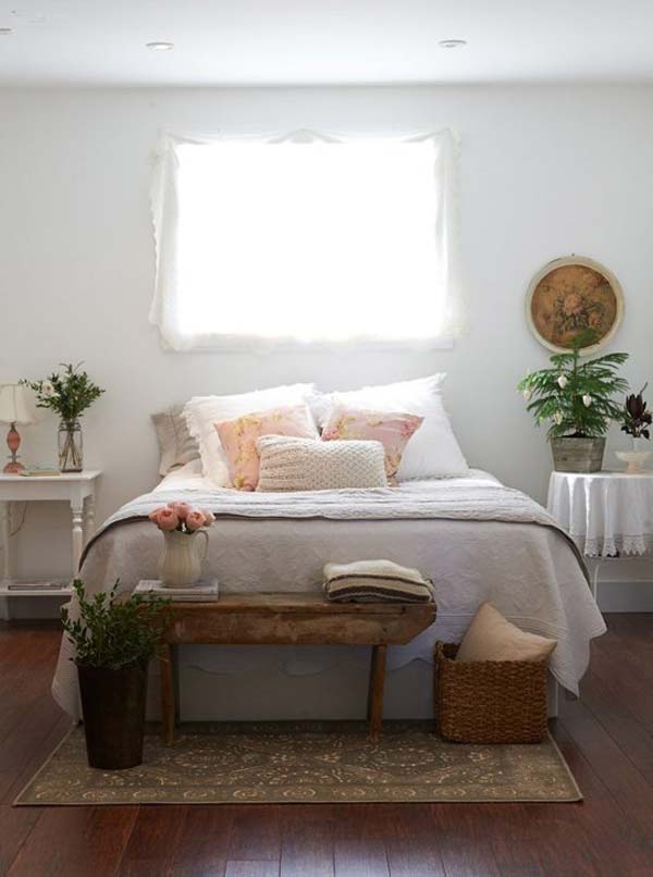 Bạn có thể đặt những chiếc kệ nhỏ có chiều ngang bằng đúng chiều ngang của giường với màu sơn đồng màu với giường hoặc các gam màu tối hoặc những chiếc bàn hay ghế tựa êm ái dùng làm nơi nghỉ ngơi, đọc sách hay xem TV trong phòng ngủ.